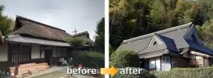 雨漏りする茅葺き屋根に金属屋根カバー工法|大阪府枚方市の事例336